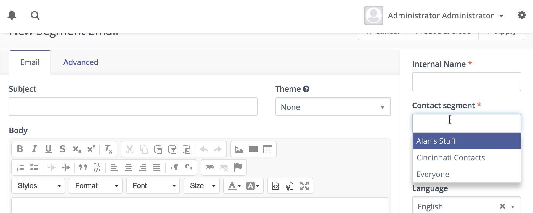 When creating an email you can select the segments to which you want to send the email.